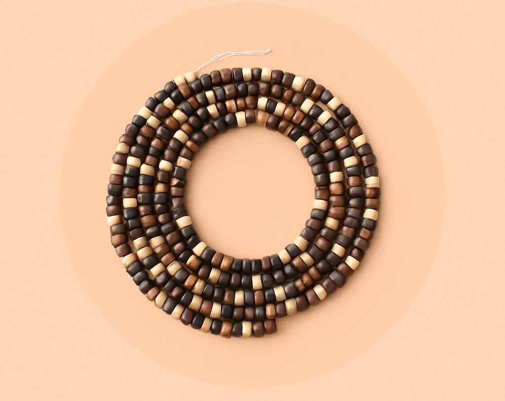A smooth, earthy mix of cocoa, cream, and latte tones that melt together like brown sugar on warm skin. Perfect for grounding your energy and flaunting your natural radiance — this strand is a whole mood. 🧸✨