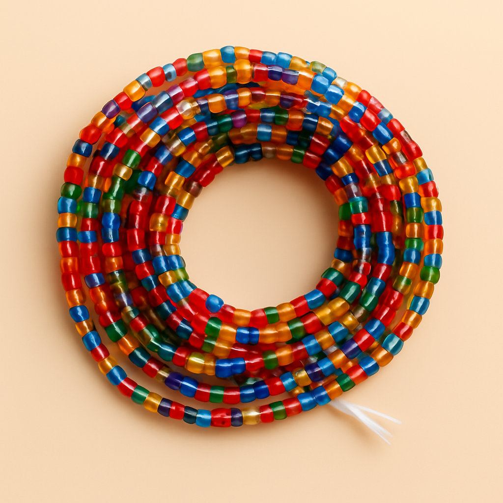 Carnival Queen brings the party to your waistline! A bold celebration of color, this strand mixes vibrant reds, blues, greens, yellows, and oranges in a joyful, high-energy burst. For the fearless, fun-loving spirit who lives loud and dances proud.