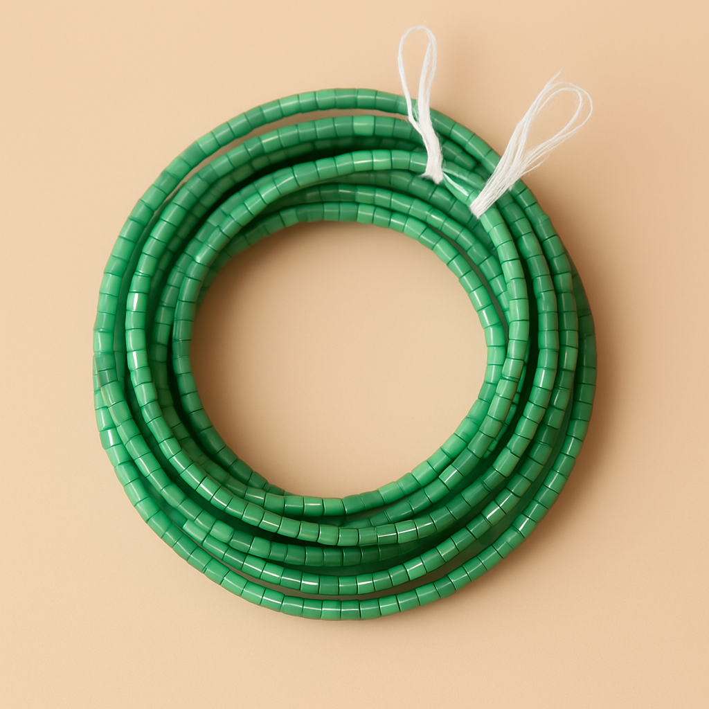 Dare to be desired. Envy Me is a deep, rich emerald green strand that radiates elegance and balance. These rectangular glass beads give off an iridescent shine that shifts with the light—perfect for standing out without saying a word. Whether you're channeling prosperity, grounding energy, or just showing off your sass, this strand has your back (and your waist).