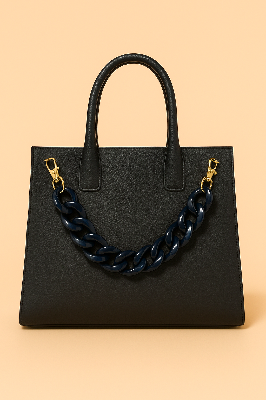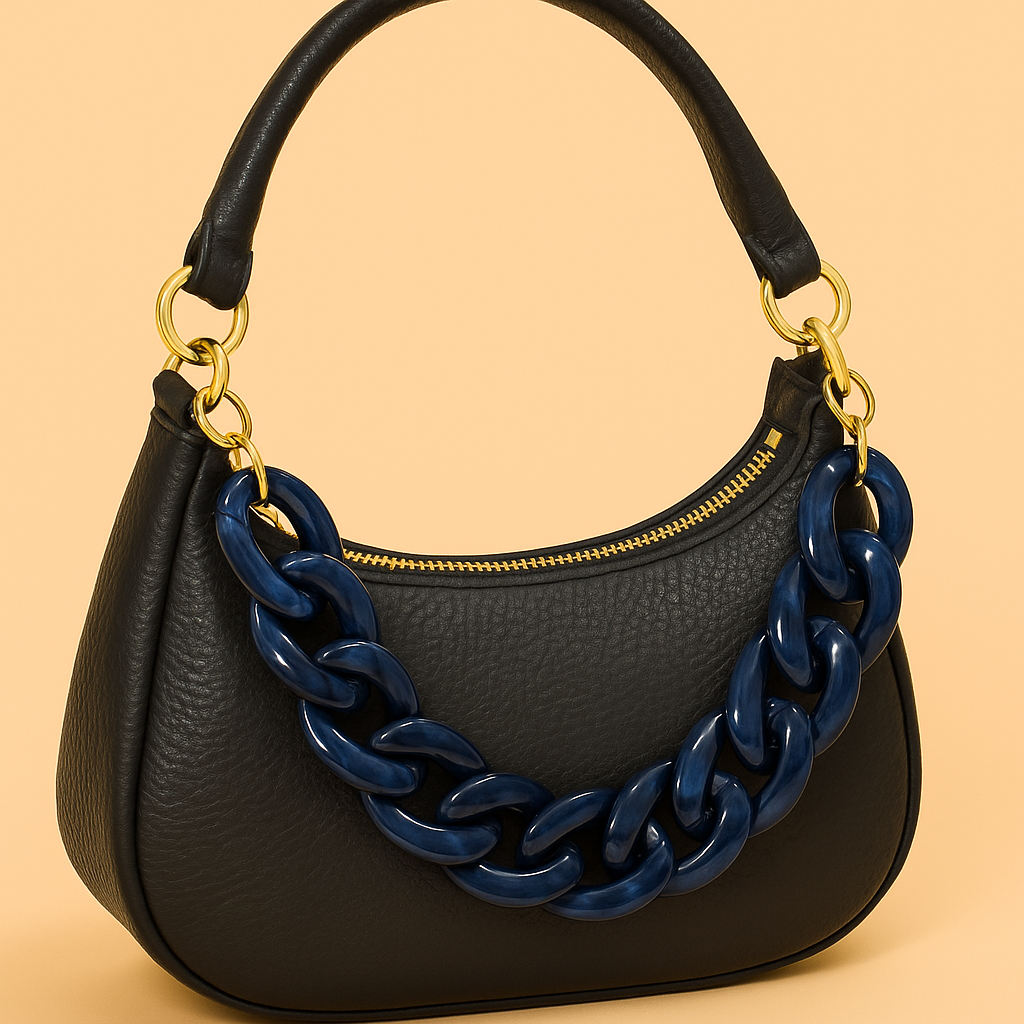 Elevate your bag game with the Midnight Marble Luxe Strap, featuring a rich navy marbled finish that’s as mysterious as it is stylish. This chunky acrylic chain is paired with polished gold clasps, giving your purse a bold, designer-inspired edge. Whether you're keeping it cute with the short handle version or going full glam with the long crossbody or shoulder strap, this piece transforms any bag into a fashion statement. It’s functional, detachable, and fabulously fierce—just like you.