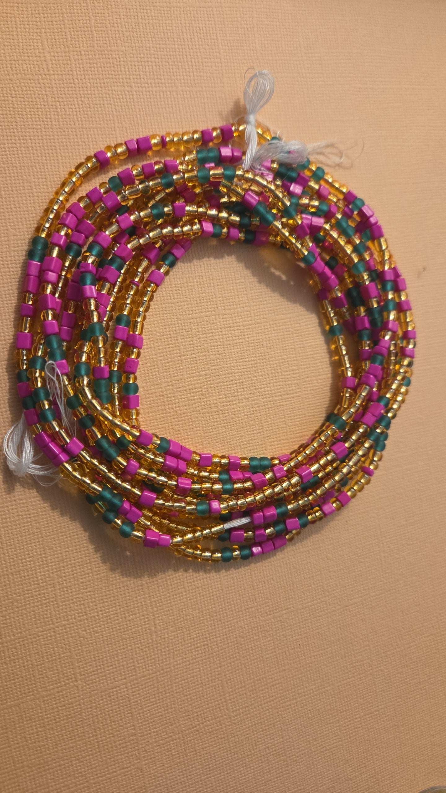 A lush blend of fuchsia, emerald, and shimmering gold beads woven together to create a waistbead strand that radiates royalty and vitality. The bold magenta pops with playful energy, while the emerald beads ground you in balance and growth. Gold glimmers throughout, symbolizing wealth, beauty, and divine power. Royal Orchard is a statement of abundance, femininity, and sensual confidence β perfect for women ready to bloom boldly in their season. πΏβ¨
